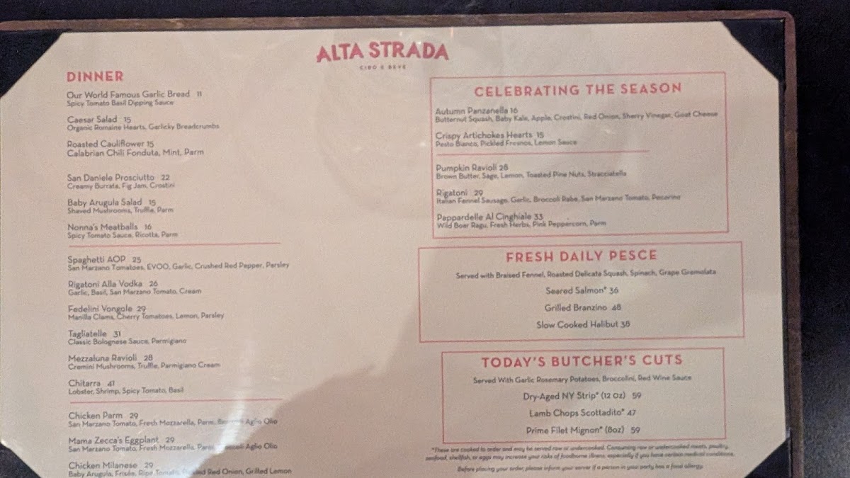 Introducing the Menu at Alta Strada - Wellesley, MA